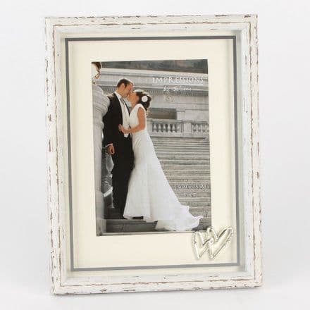 5" X 7" - DISTRESSED WOOD WEDDING FRAME WITH HEART ICONS A wedding frame with heart icons and 5" x 7" aperture from CELEBRATIONS?. Items will be dispatched within 24hrs. PRODUCT DIMENSIONS:260 h 207 w 25 d mm
