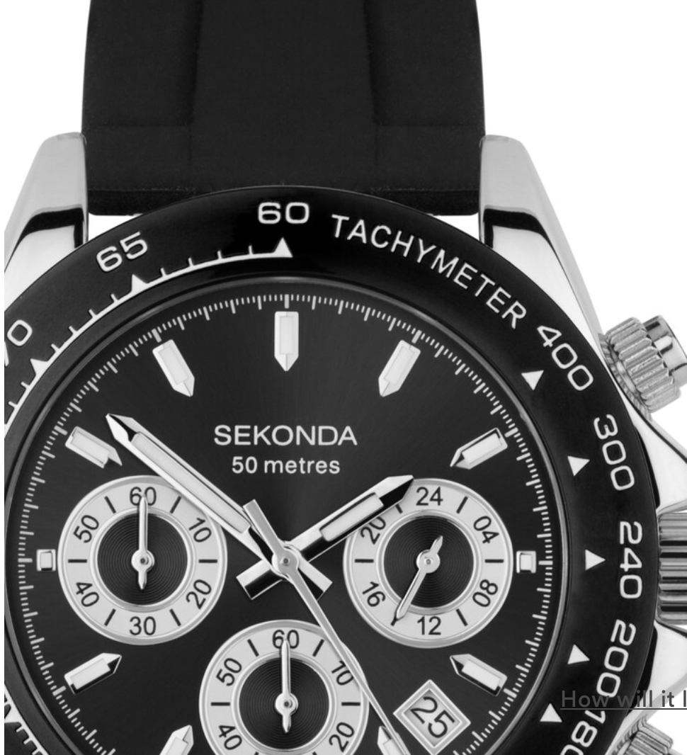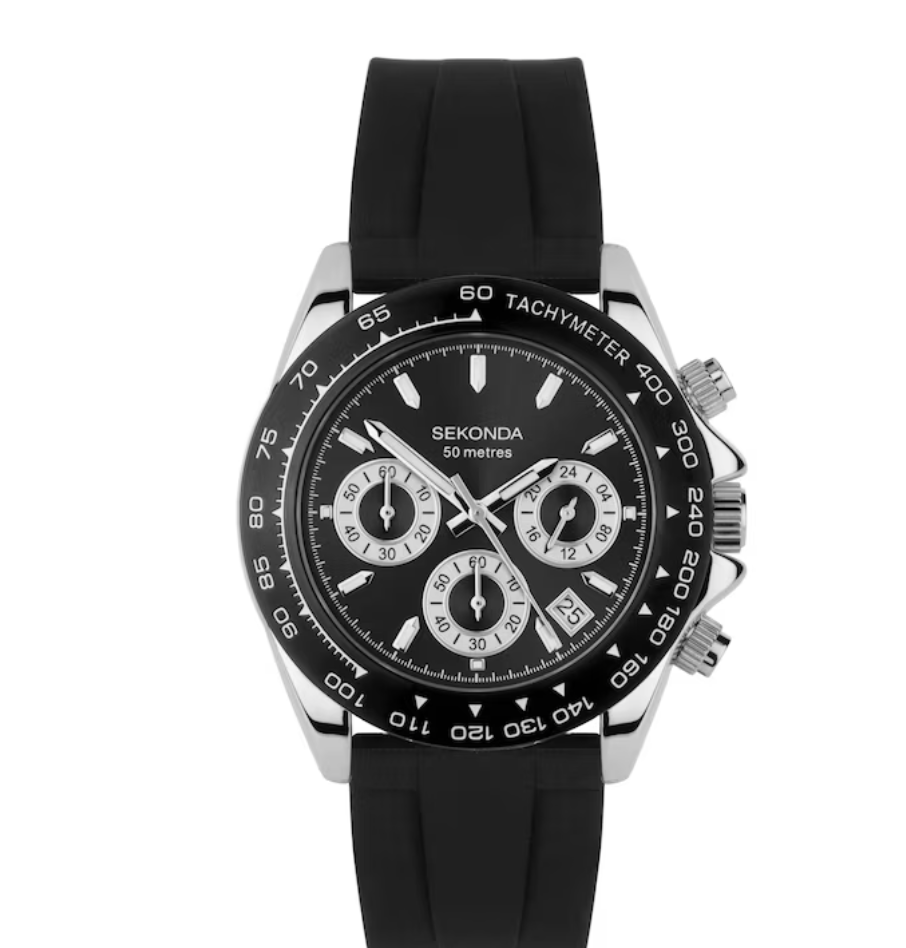 Sekonda Circuit Chronograph Black Rubber Strap Watch 30199
