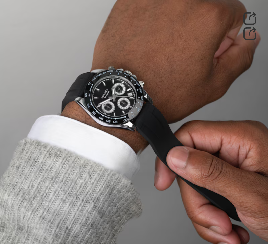 Elevate your style with the Circuit Chronograph Black Rubber Strap Watch 30199. Featuring a sleek black rubber strap and precise chronograph functionality.