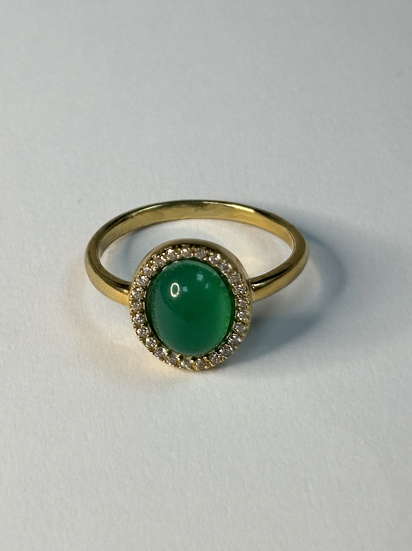 Gold Plated Round Green Stone Ring