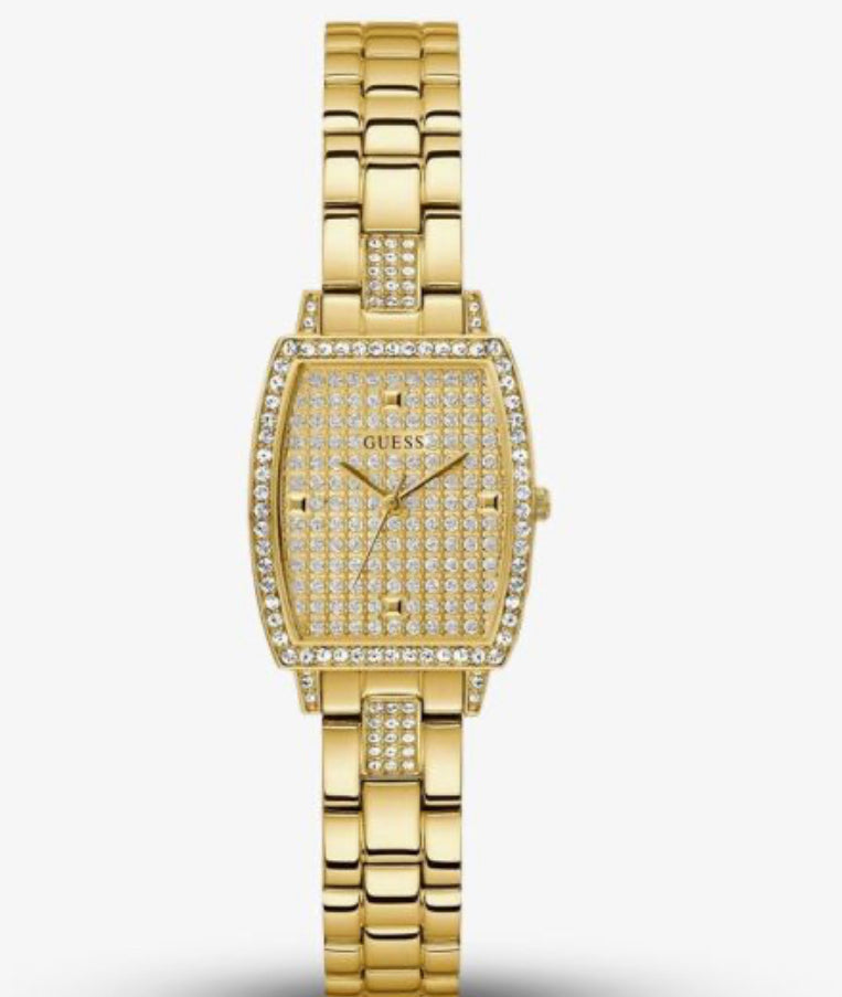 Make a statement with the Guess Women’s Orologio Watch. Its luxurious gold finish and diamond design offer a perfect blend of sparke and sophistication.