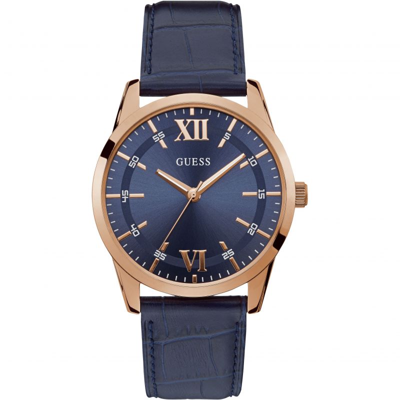 Guess Watch Mens Theo W1307G2 Rose Gold Case with Blue Trim Date Dial Leather Strap