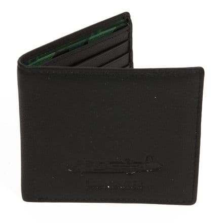 LANCASTER MILITARY HERITAGE LEATHER WALLET A genuine black leather wallet with a debossed Lancaster Bomber on the front and a camouflage green note pocket lining. Items will be dispatched within 24hrs. PRODUCT DIMENSIONS:95 h 110 w 15 d mm