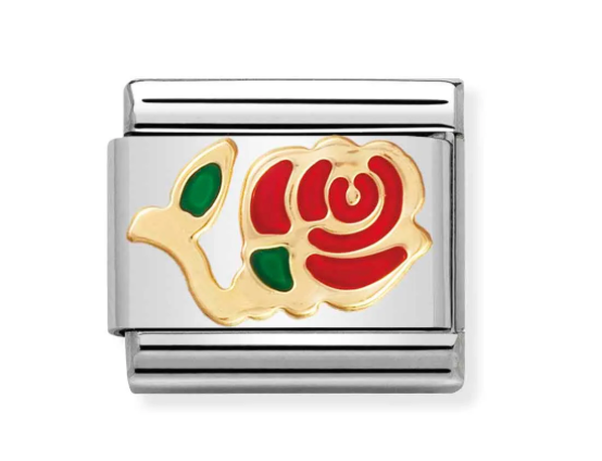 Nomination Classic Bonded Yellow Gold Link Red Rose Charm Link 03021401