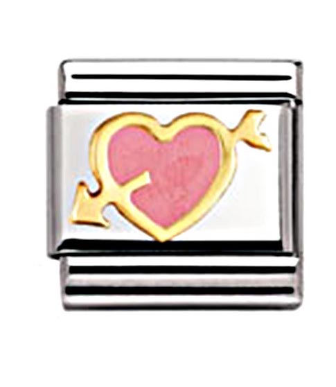 Nomination Gold Heart with Pink and Arrow Charm Link 03025301