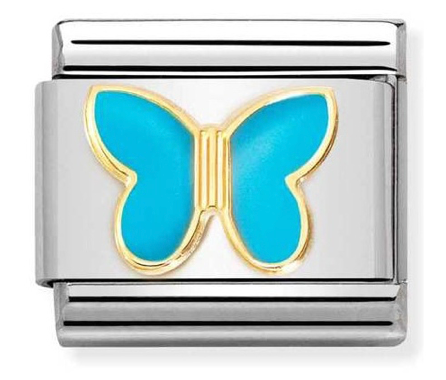 Elevate your charm collection with the Nomination Classic Gold & Turquoise Butterfly Charm Link. Crafted with refined gold tones and a subtle turquoise butterfly motif, this charm exudes understated elegance.