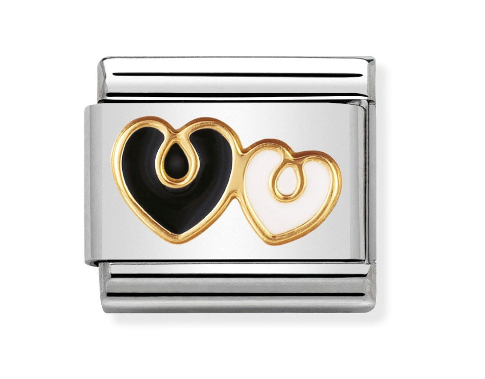 Nomination Classic Link Black & White Heart Charm in Gold 03027907