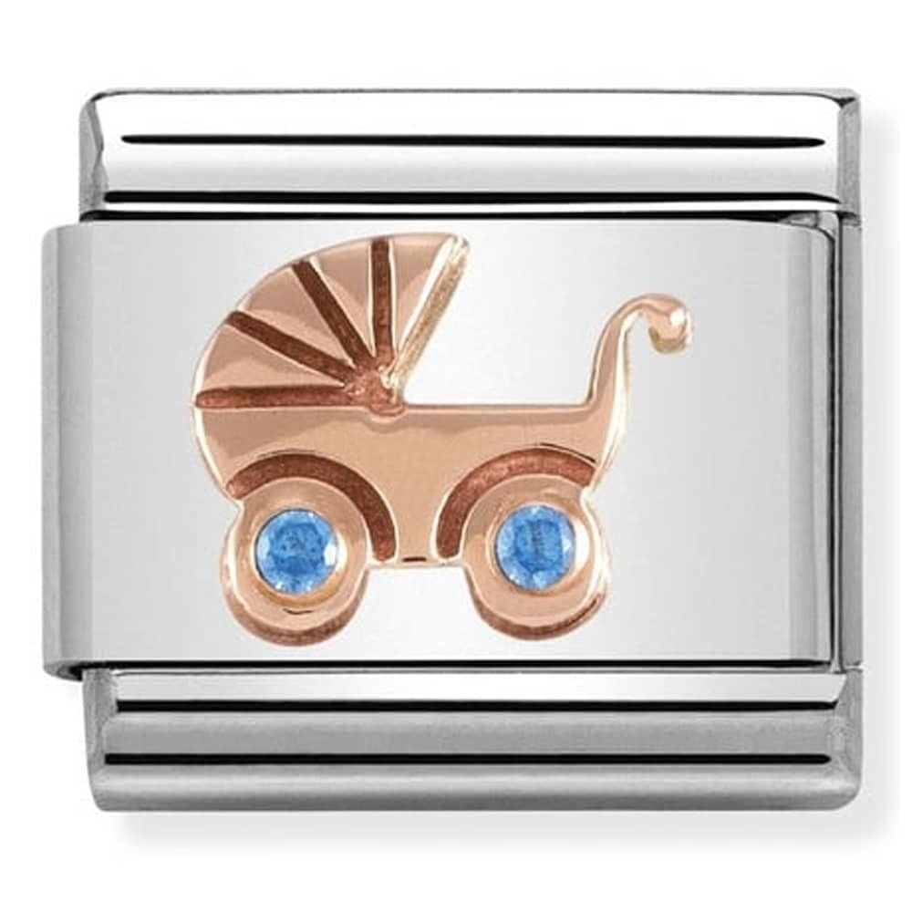 Nomination Classic New Arrival Baby Rose Gold Blue Pram Charm Link 43030505