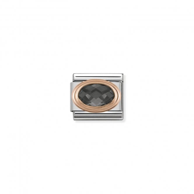 Nomination Classic Rose Gold Oval Black CZ Stone Charm Link 430601011