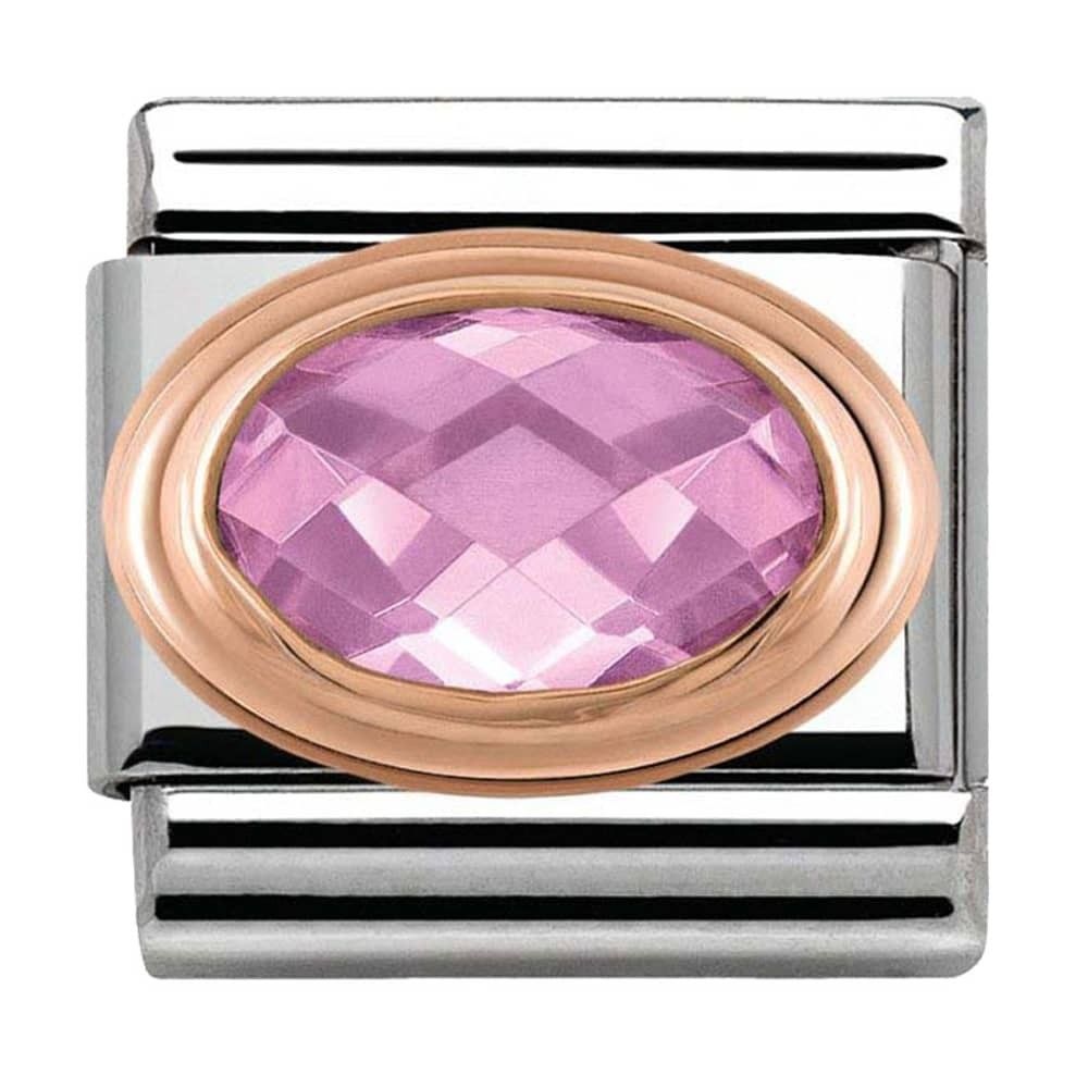Nomination Classic Rose Gold Oval Pink CZ Stone Charm Link 430601003
