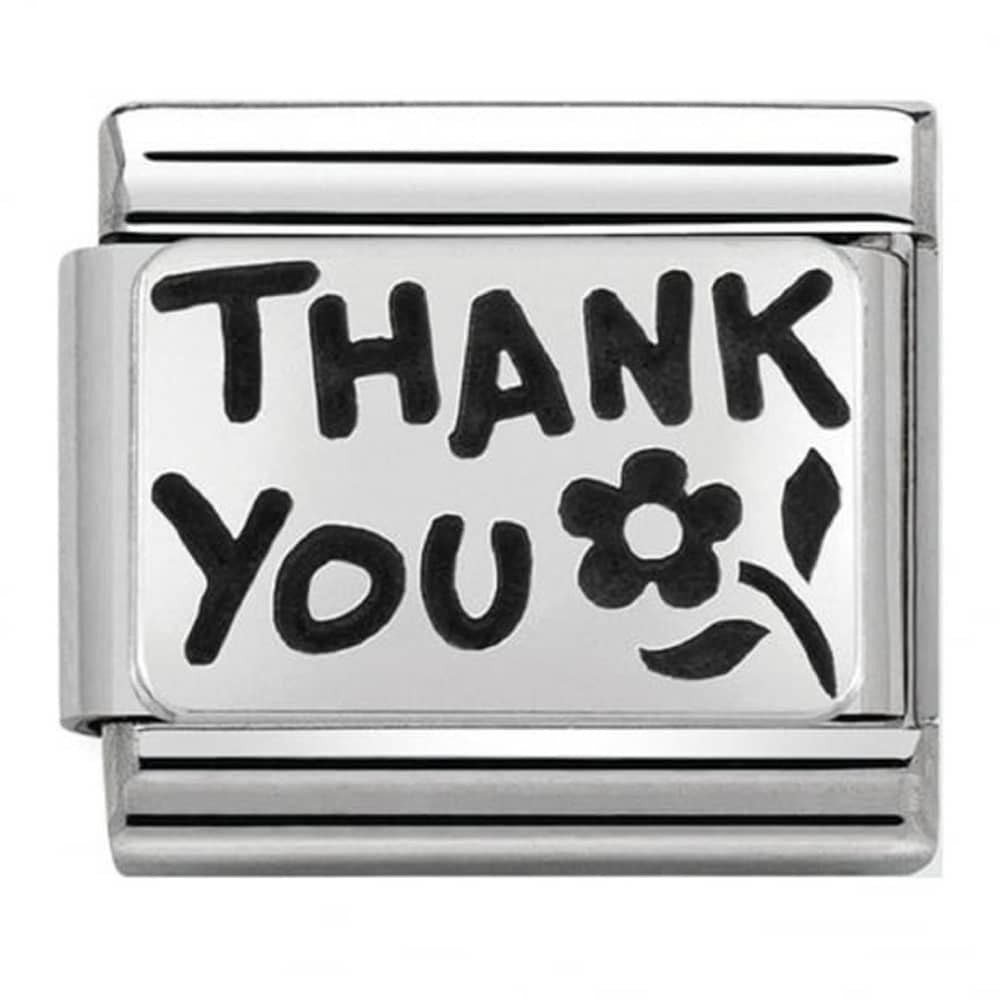 Nomination Classic Silver Charm Thank You Code 33010242 Remember "One for You, One for Me" Product will be shipped with Nomination packaging. Free Uk Delivery on all Nomination orders.