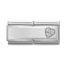 Nomination Classic Double Silver Engraving plate CZ Heart Charm Link 33073109