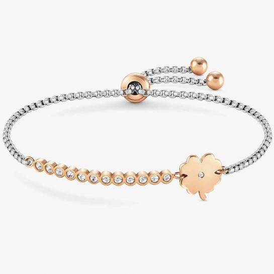 Nomination Milleluci Rose Gold Finish Clover Pave Half Bangle Toggle Bracelet 028004006