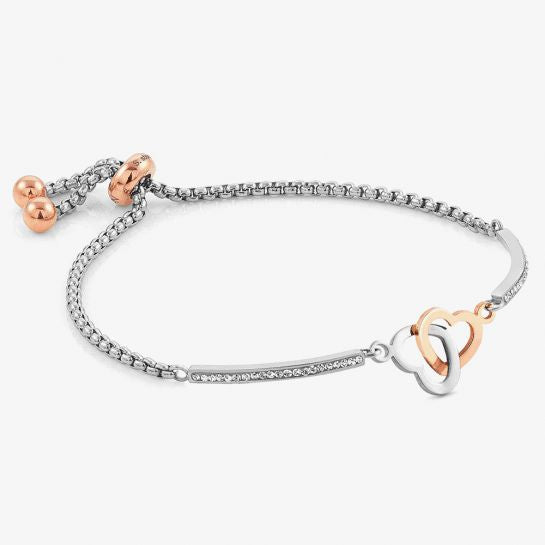 Nomination Milleluci Stainless Steel And Rose Gold Heart Pave Half Bangle Toggle Bracelet 028004051
