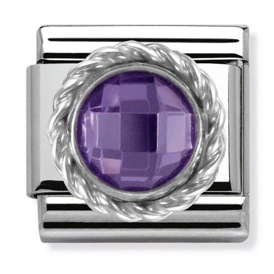 Nomination Silvershine Amethyst Faceted Round Stone Charm Link 330601001
