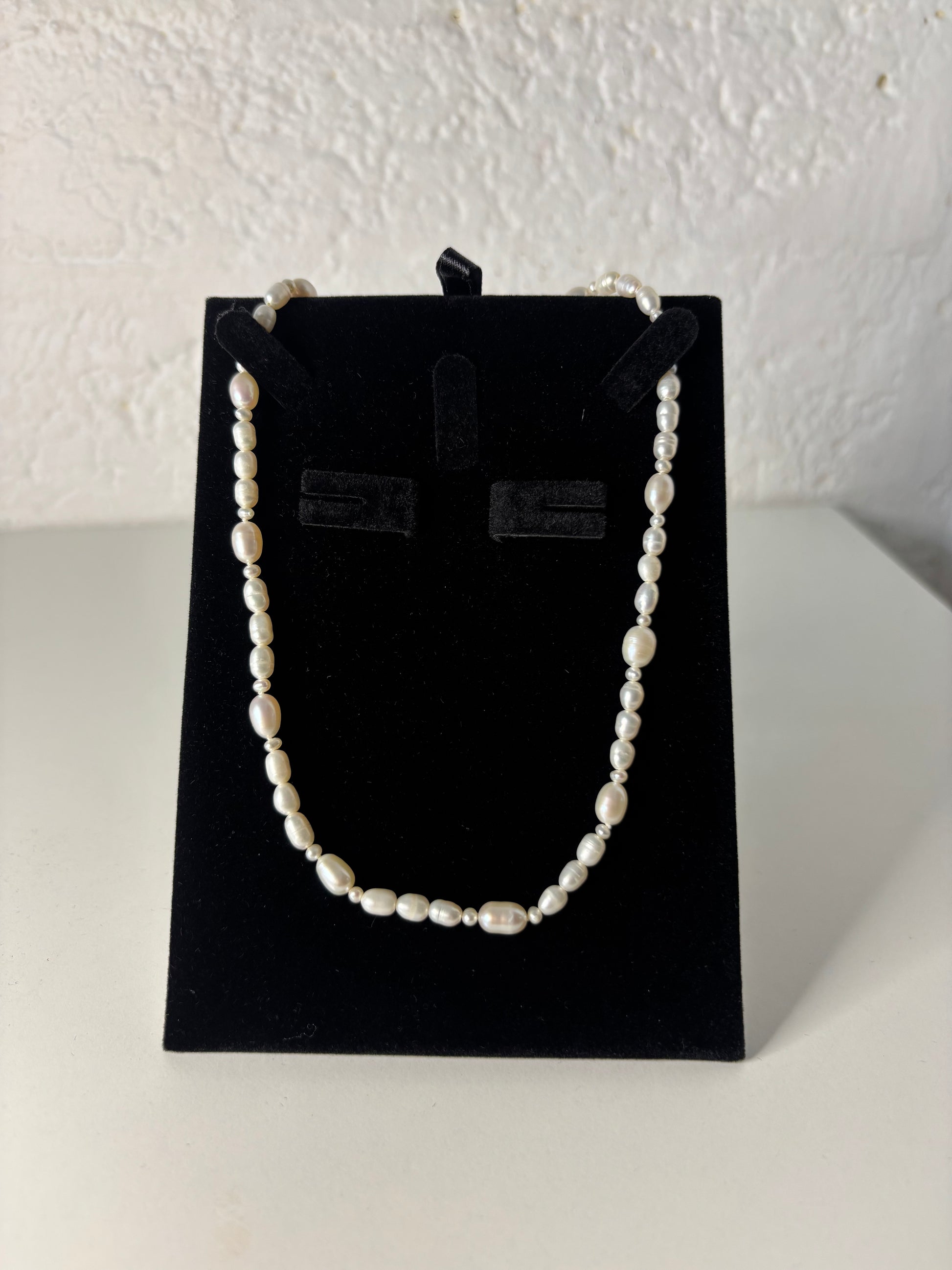 This Pearl Chain Necklace blends classic elegance with modern simplicity. Featuring lustrous pearls delicately strung along a refined chain, it offers a graceful accessory that enhances any ensemble. Perfect for adding a sophisticated touch to both casual and formal looks, this necklace embodies timeless beauty and understated luxury.