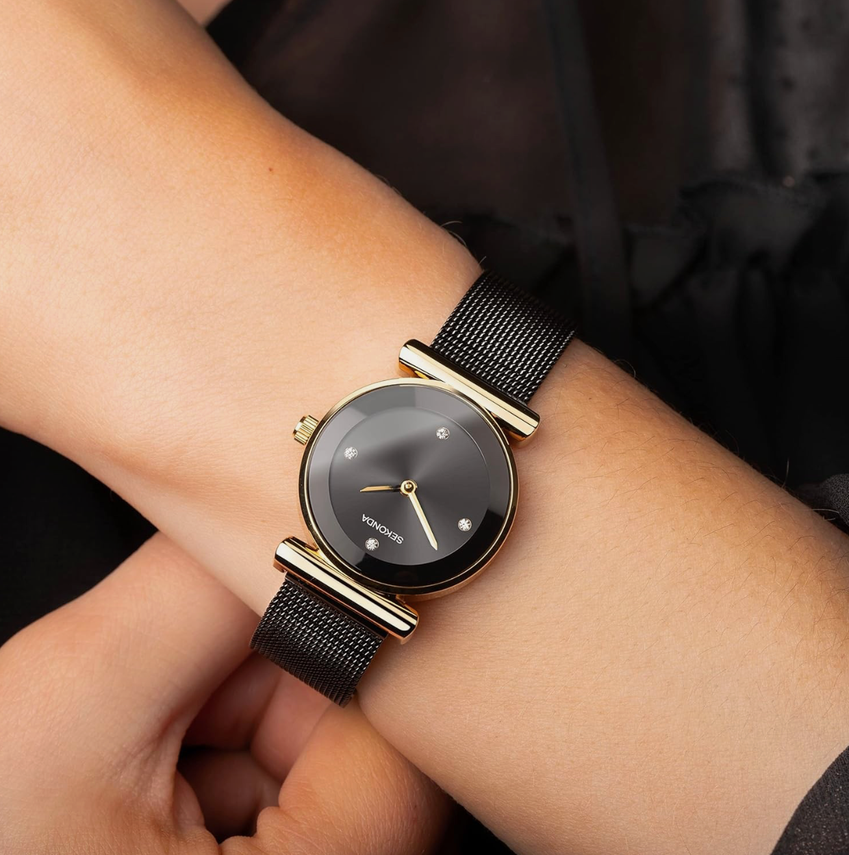 Sekonda Women's Gold Dial Watch With Chrystal Black Face