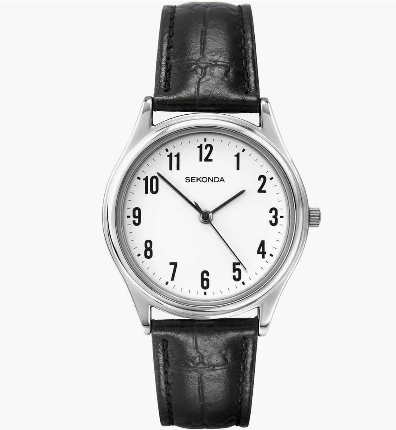 Sekonda Easy Reader Silver & Black Leather Watch 3621