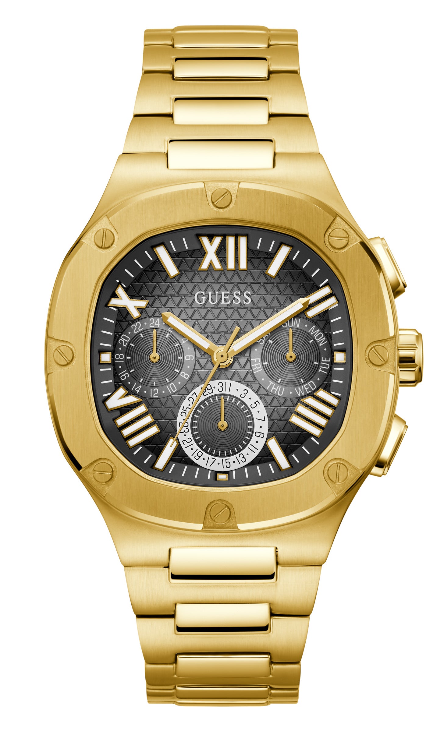 Make a statement with the Guess Mens Headlines Gold Watch. Its luxurious gold finish and bold design offer a perfect blend of style and sophistication.
