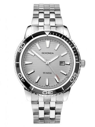 Sekonda Mens Grey Date Dial Black Bezel Bracelet Watch 1791