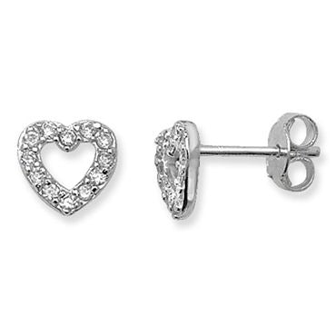 Silver CZ Open Heart Sm Stud Earrings SE655B