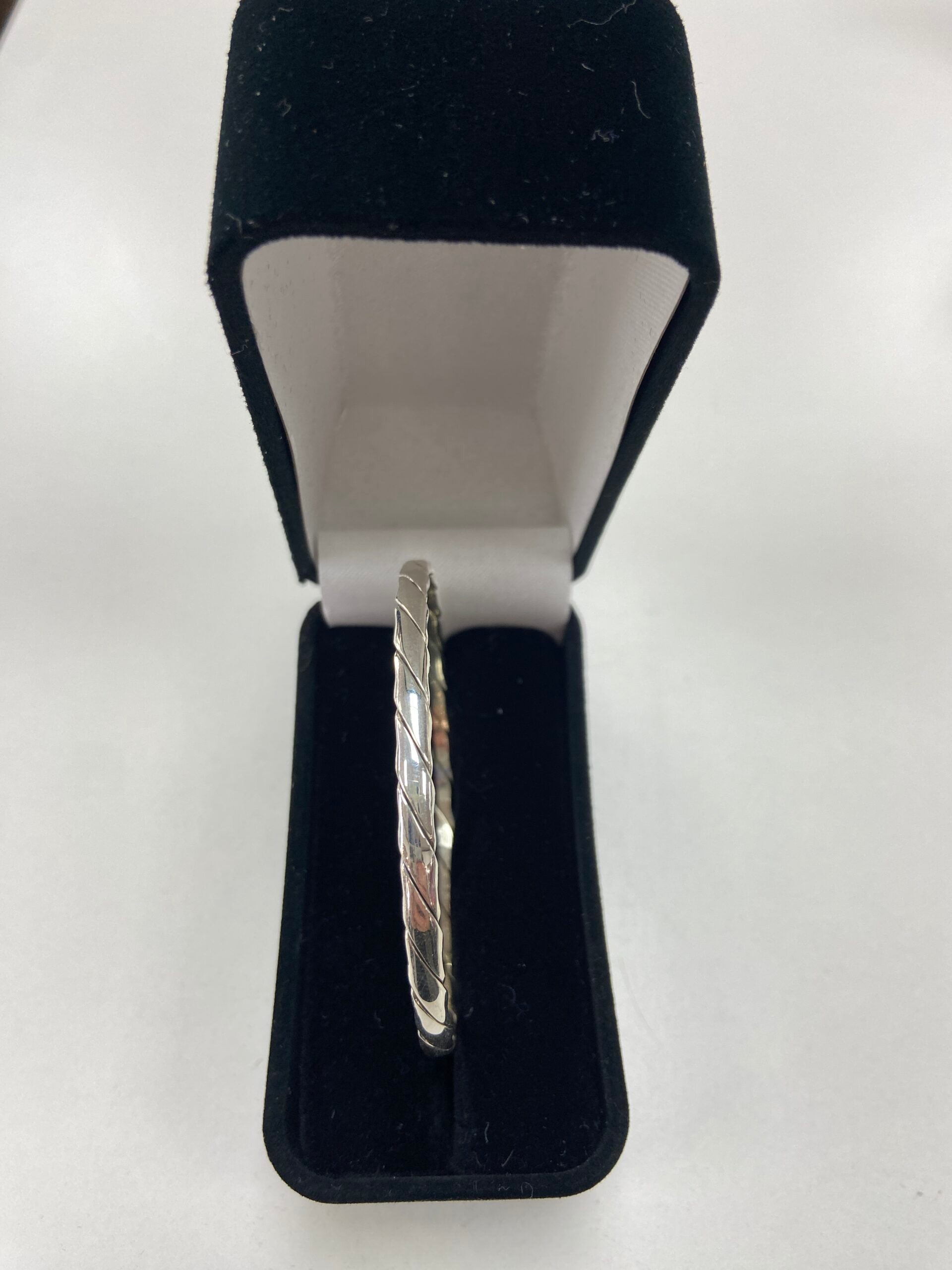 A Beautiful hand crafted sterling silver full bangle. Perfect for most adults, can be slightly adjusted to make bigger or smaller. All items are in stock and will be posted within 24hrs.