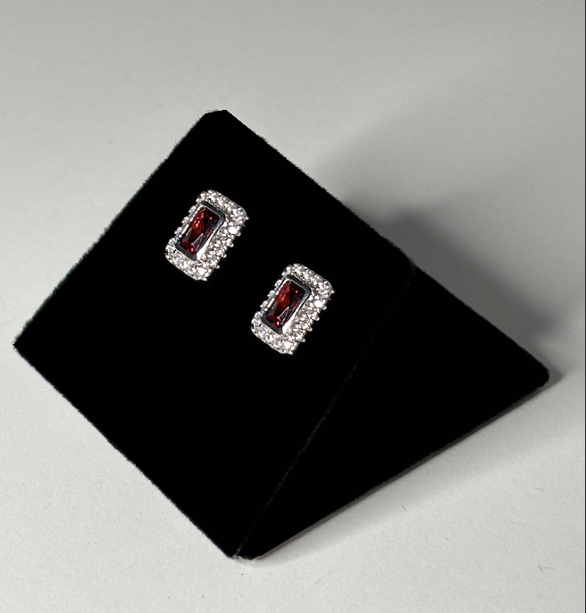 Silver Rectangular Red CZ Stone Earrings