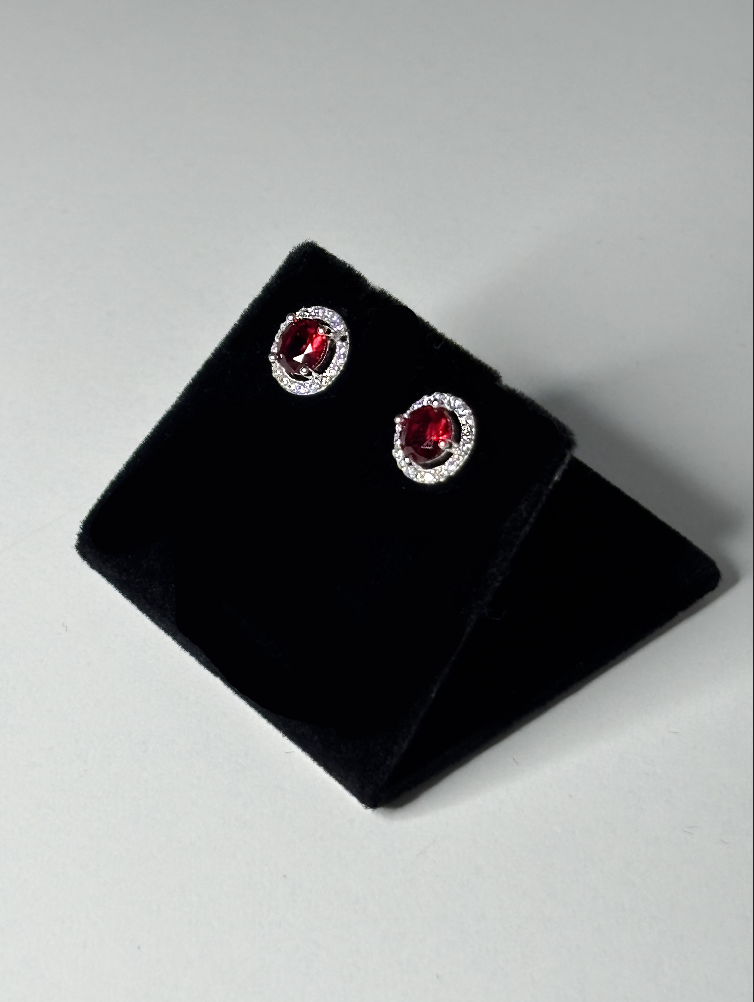 Elevate your elegance with these Silver Round Red CZ Stone Earrings. Crafted from lustrous silver, each earring features a vibrant red cubic zirconia stone that captures light beautifully, adding a refined splash of color