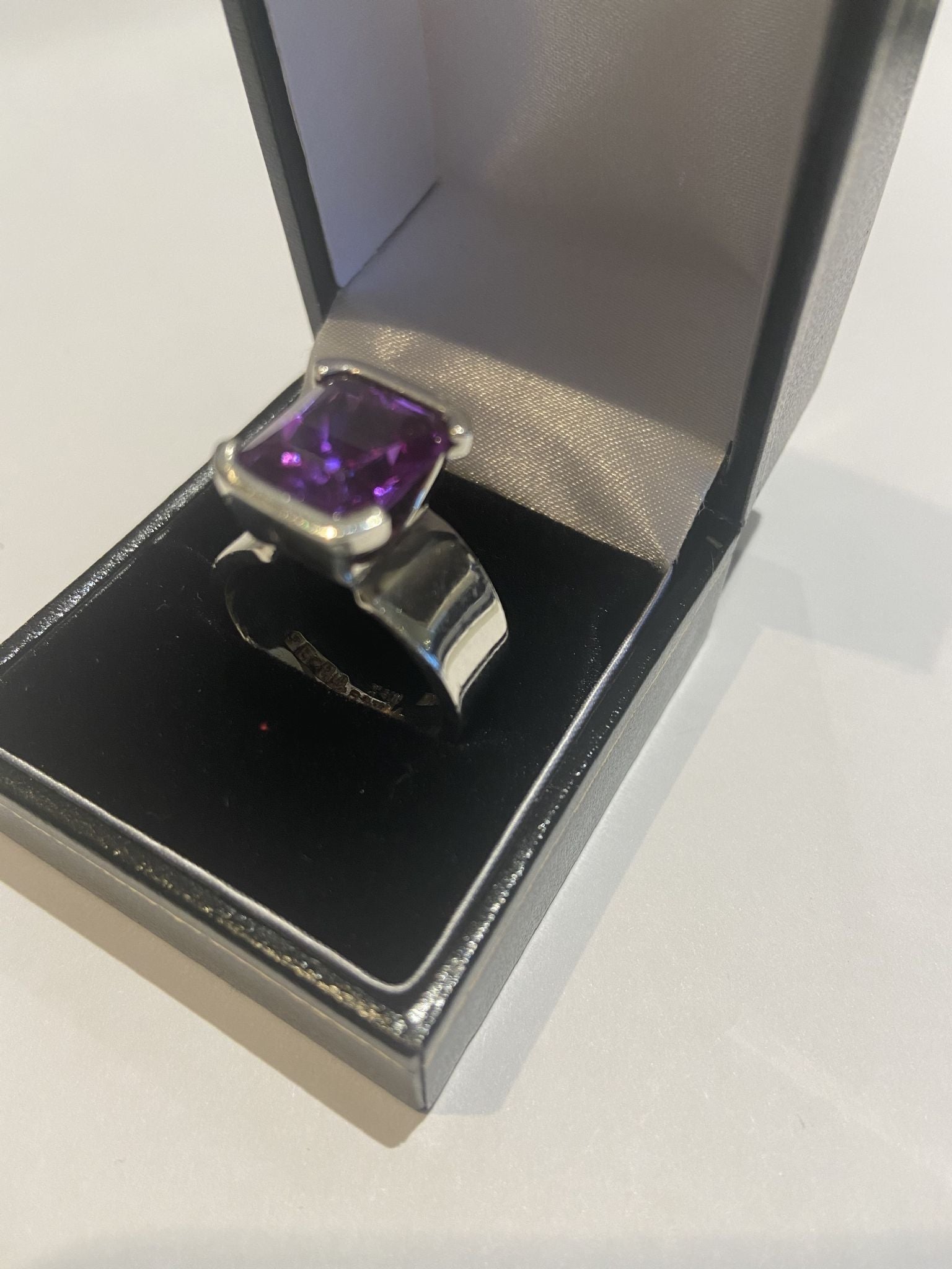 Sterling Silver Chunky Ring with a large Amethyst CZ Stone Size R