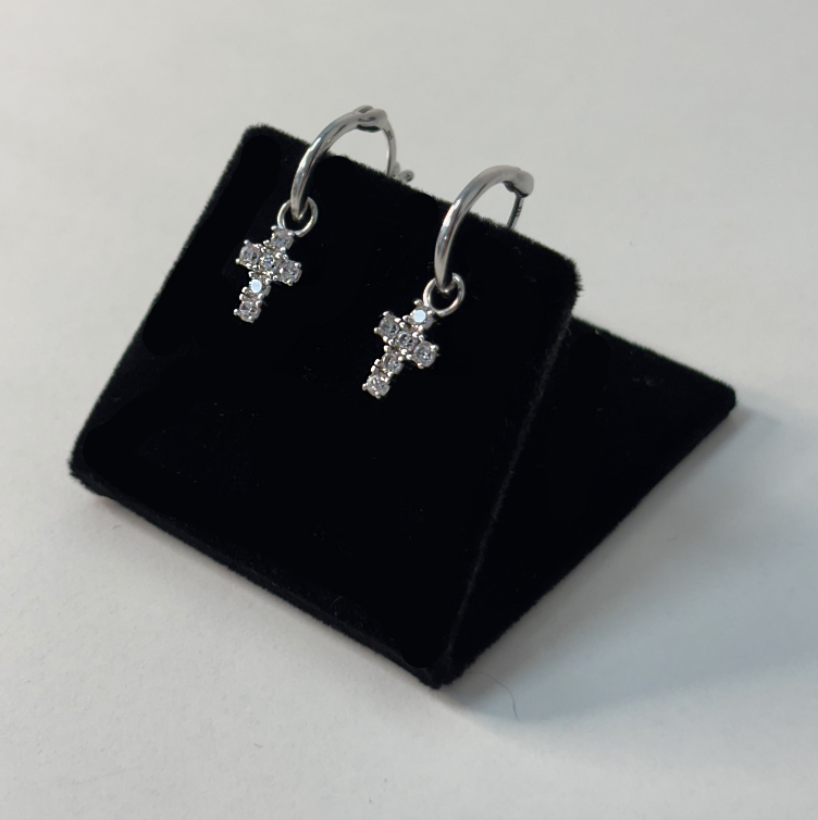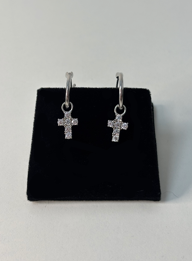 Sterling Silver Dangly Cross Earrings With CZ Stones