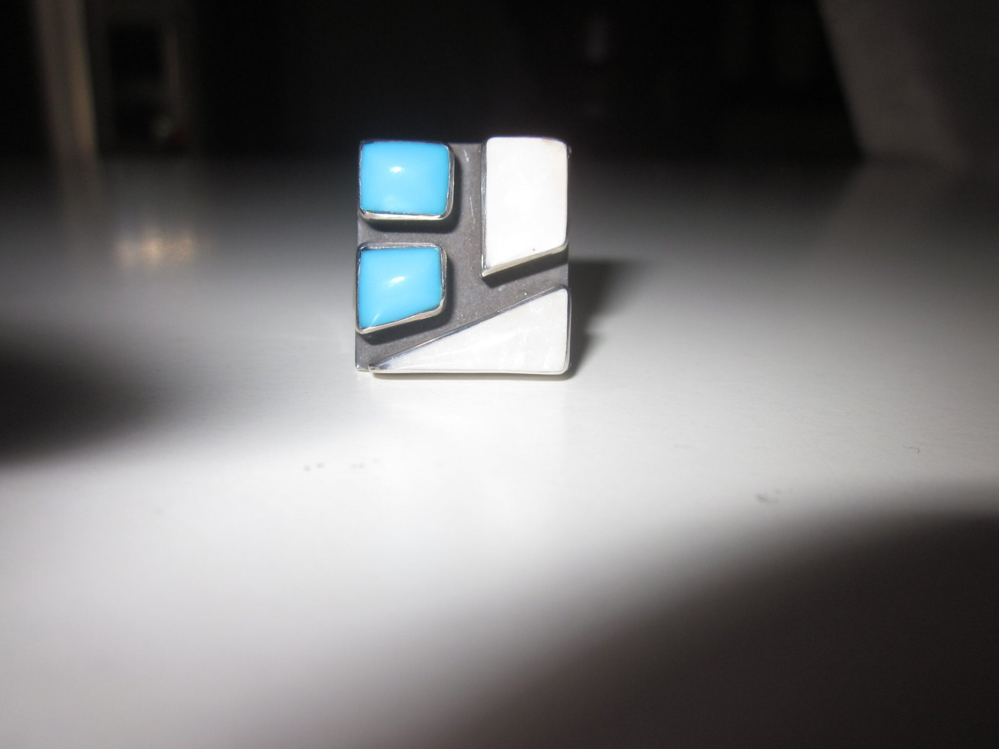 Sterling Silver Sea Blue and White Adjustable Puzzle Ring