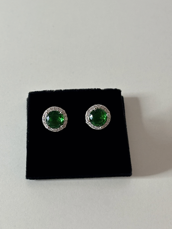Sterling Silver with CZ and Round CZ Stone Earrings