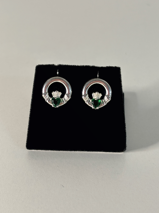 Sterling Silver with Green CZ Stone Claddagh Earrings